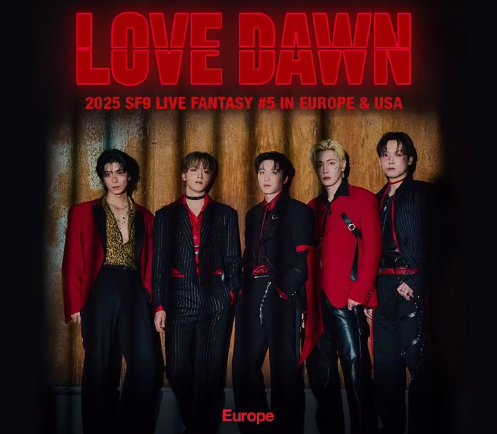Die Sensation ist zurück: SF9, die gefeierte K-Pop-Gruppe aus Südkorea, kommt im Oktober 2025 endlich nach Europa. Mit ihrem neuen Mini-Album “Love Race” im Gepäck und voller Energie starten Youngbin, Inseong, Jaeyoon, Dawon, Zuho, Yoo Taeyang, Hwiyoung und Chani ihre mit Spannung erwartete LOVE DAWN 2025 – SF9 Live Fantasy #5 Europe & USA Tour.