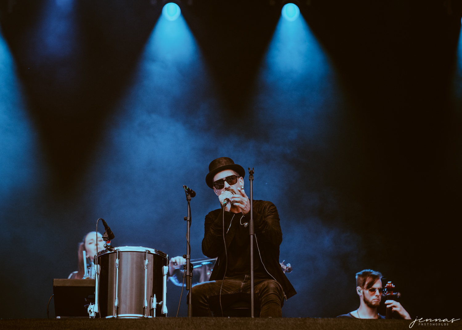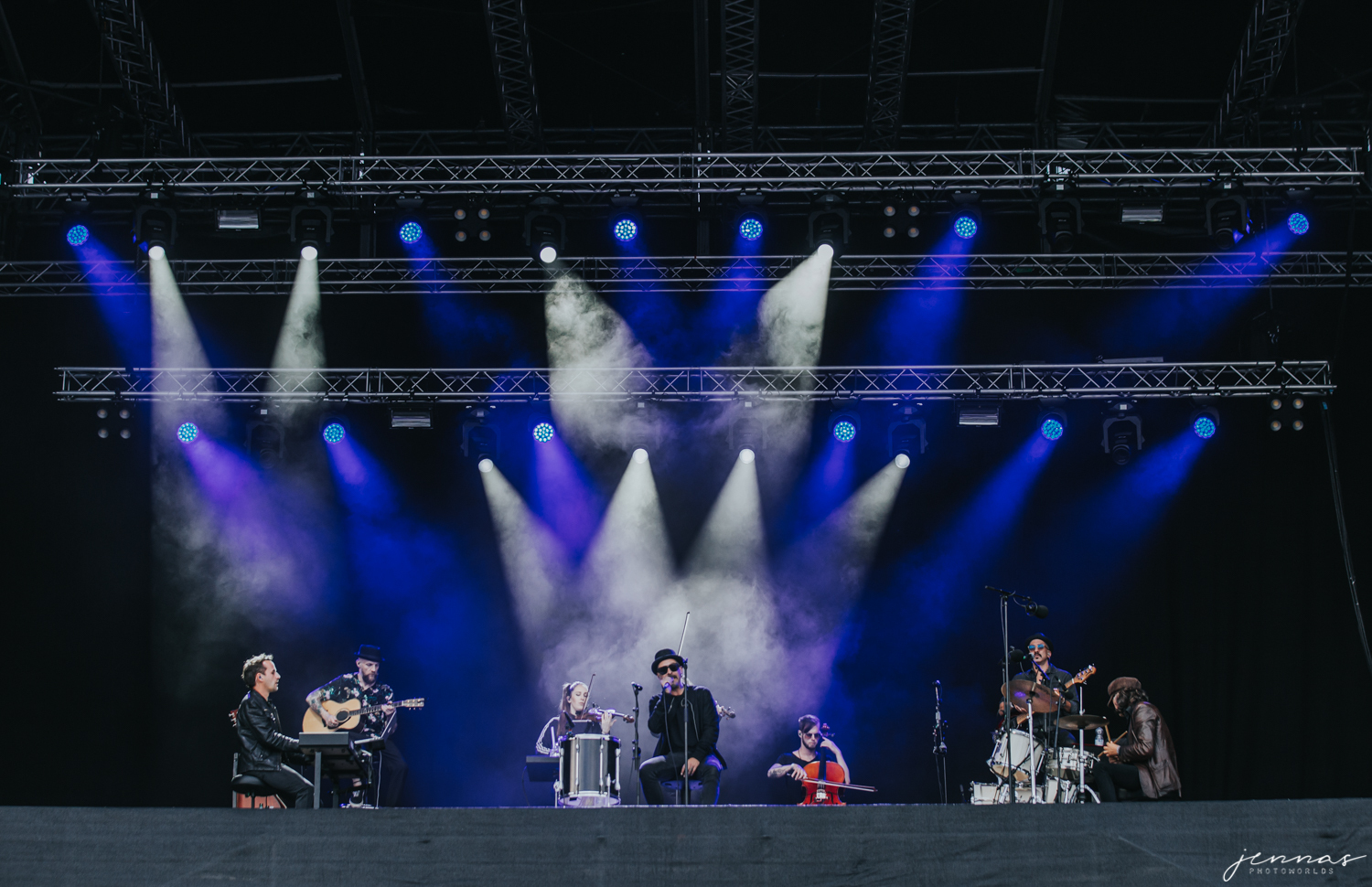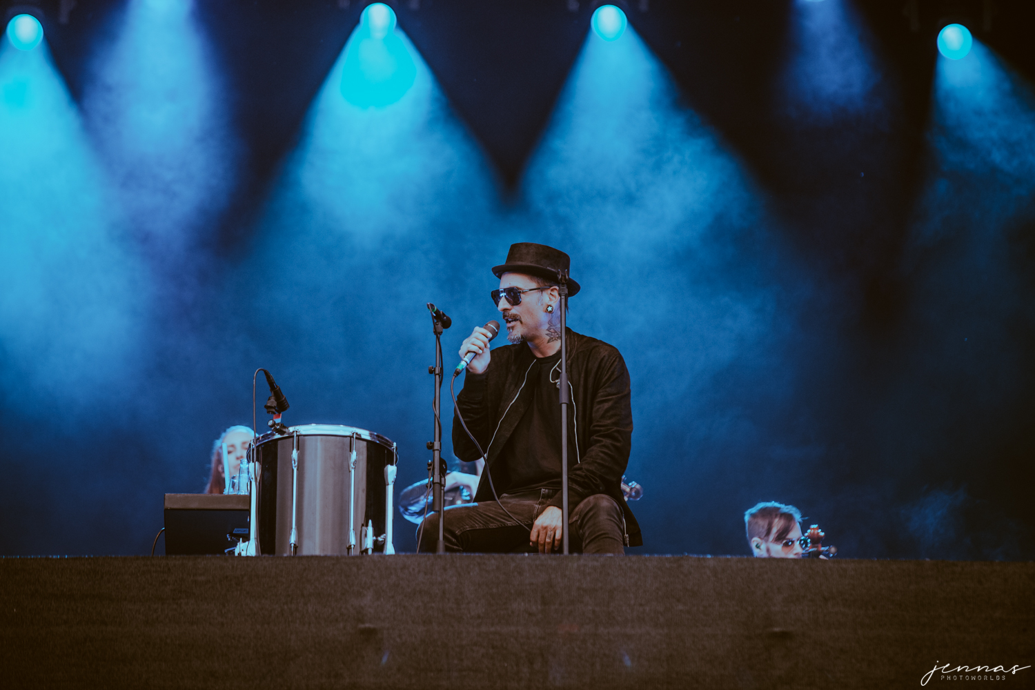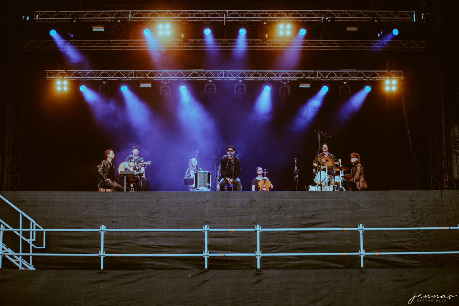 Wirtz wurde an diesem Abend von einer 7-köpfigen Band begleitet, für diese er im Laufe des Konzerte eine Menge Komplimente übrig hatte und auch ins Spotlight stellte. Kai an der Gitarre, Erik Krüger am Keyboard, Christoph am Bass – dessen Bass ganz besonders in den vorderen Reihe für ordentlich Aufmerksamkeit sorgten, Tommy am Schlagzeug, Francesca und Sonja an den Violinen und Ilja Lappin (am Bass für The Hirscheffekt) am Cello.