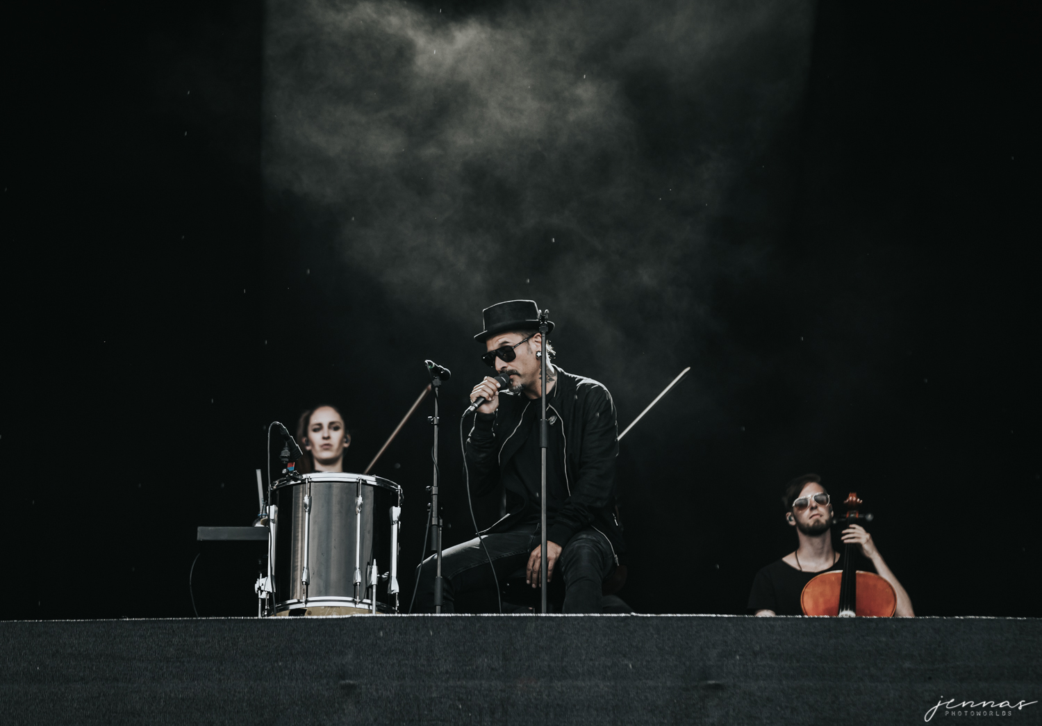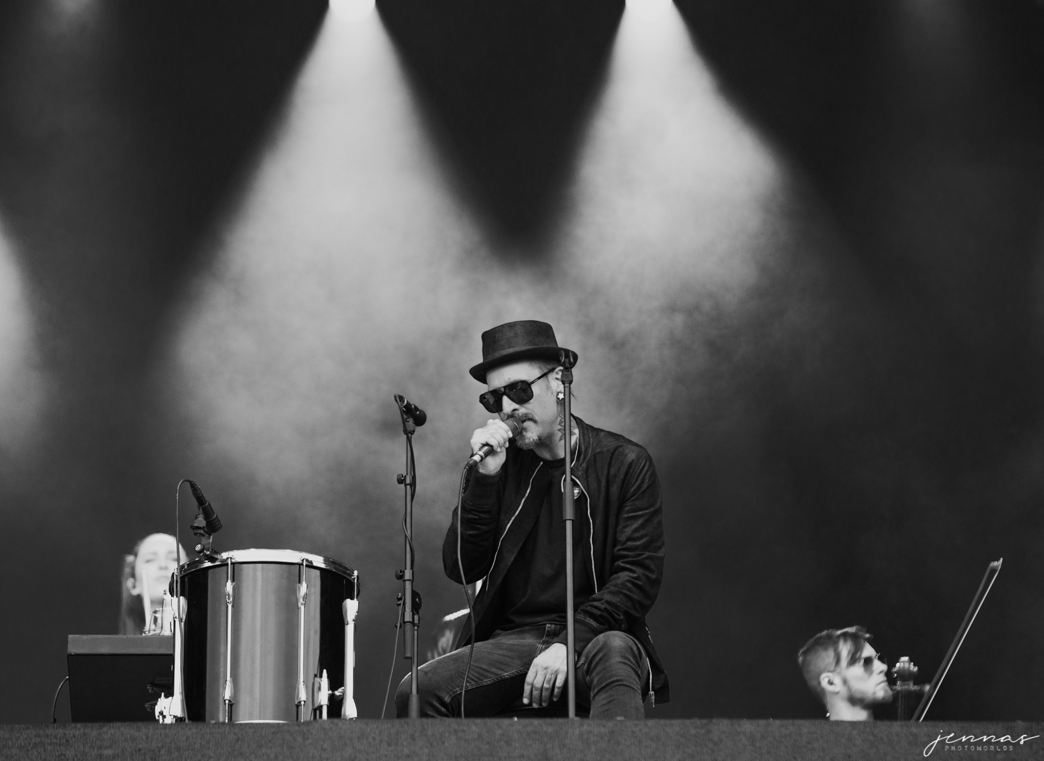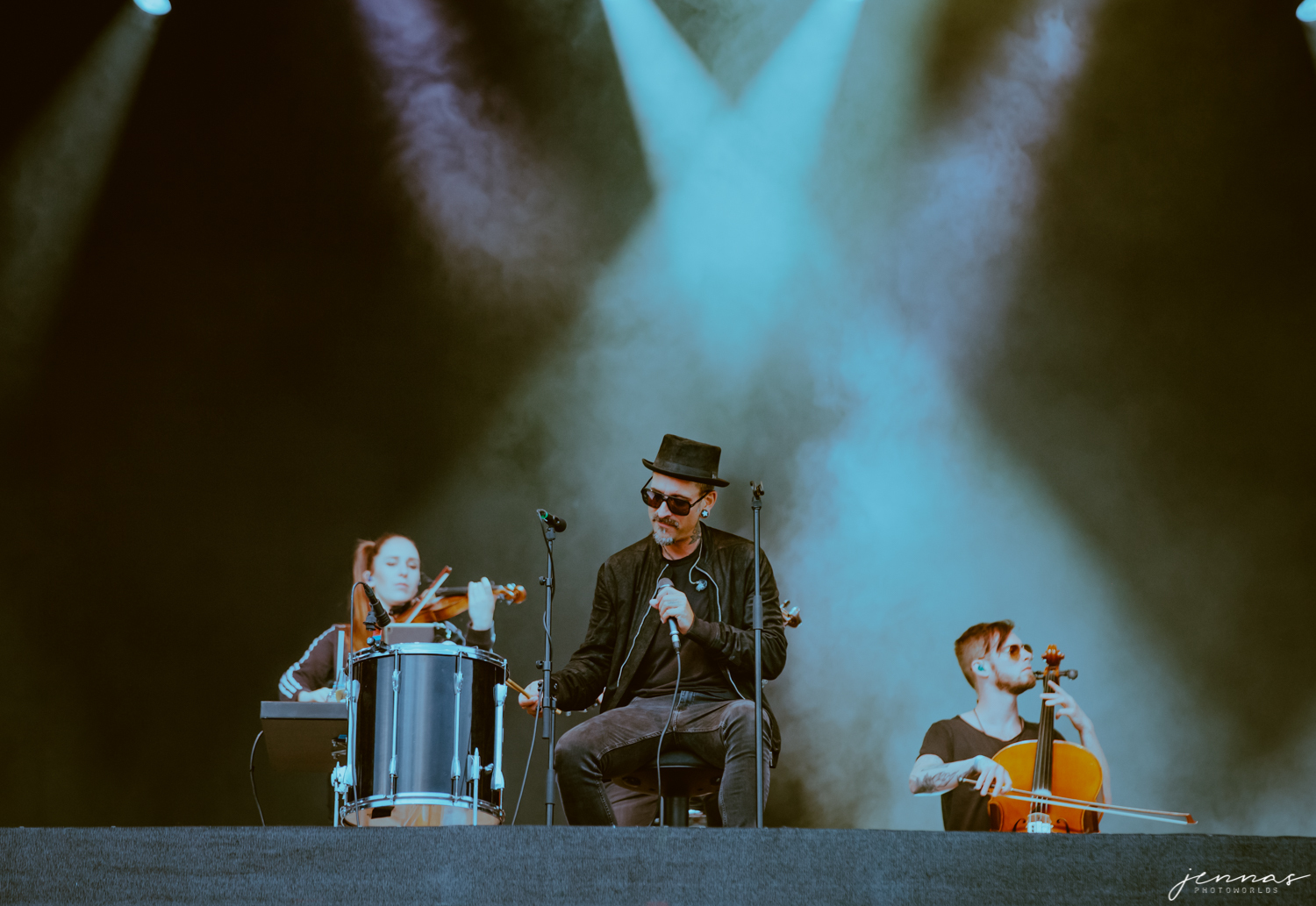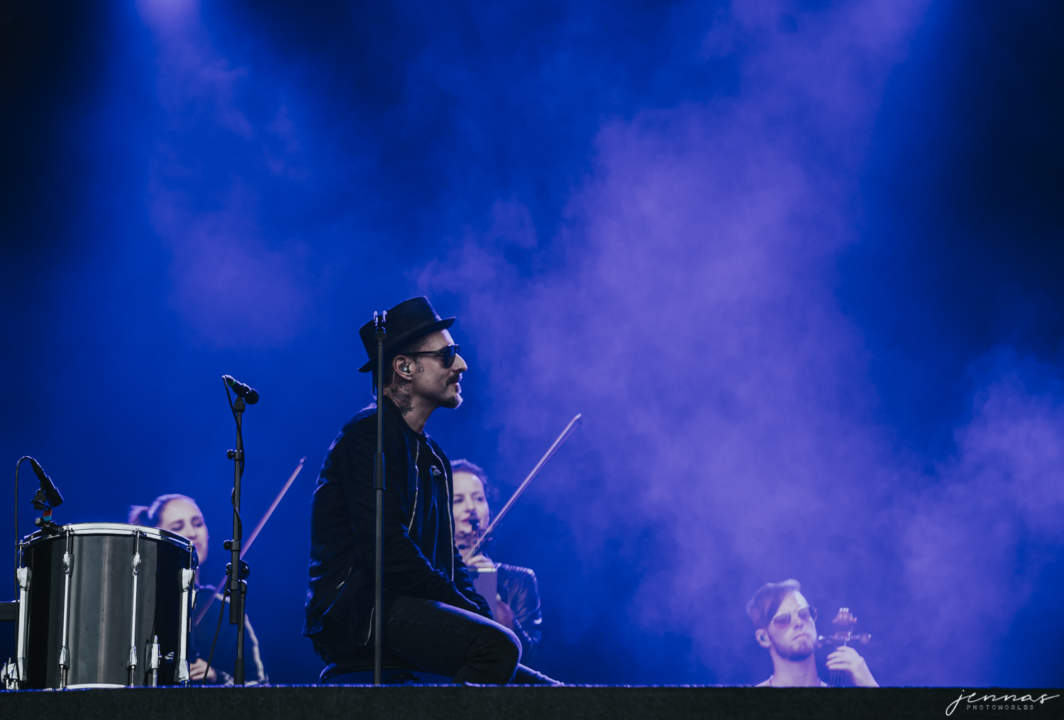 Wirtz wurde an diesem Abend von einer 7-köpfigen Band begleitet, für diese er im Laufe des Konzerte eine Menge Komplimente übrig hatte und auch ins Spotlight stellte. Kai an der Gitarre, Erik Krüger am Keyboard, Christoph am Bass – dessen Bass ganz besonders in den vorderen Reihe für ordentlich Aufmerksamkeit sorgten, Tommy am Schlagzeug, Francesca und Sonja an den Violinen und Ilja Lappin (am Bass für The Hirscheffekt) am Cello.